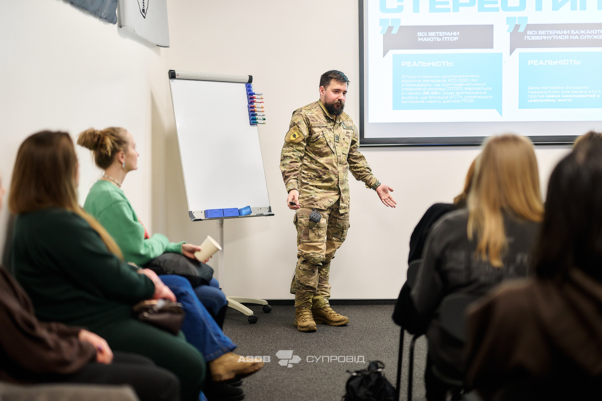 АЗОВ.Супровід демонструє, що допомога охоплює не лише лікування та фізичну реабілітацію. Поряд з категорією потреб знаходяться розвиток нових навичок та сучасне навчання. Коли солдат починає навчання для себе, у нього виникає відчуття, що життя знову під його контролем.